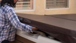 Closed: Its water-tight seal reduces the spa’s heating costs due to its superior insulation value while, at the same time, preventing undesirable access, thus protecting your investment for as long as you own it! (In contrast, more traditional covers rarely last more than 3 years!)