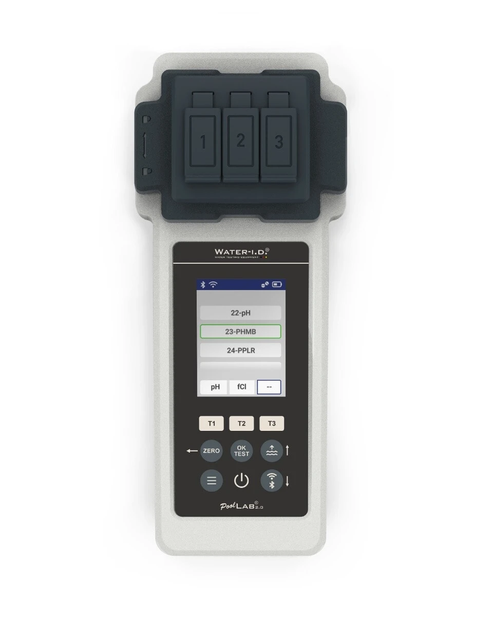 Introducing the Pool Lab® 2.0, the ultimate digital solution for professional pool and spa water analysis. With its fixed yet replaceable triple measurement-cuvette, you can effortlessly obtain quick samples by submerging the IP68 waterproof Pool Lab® into the water.
